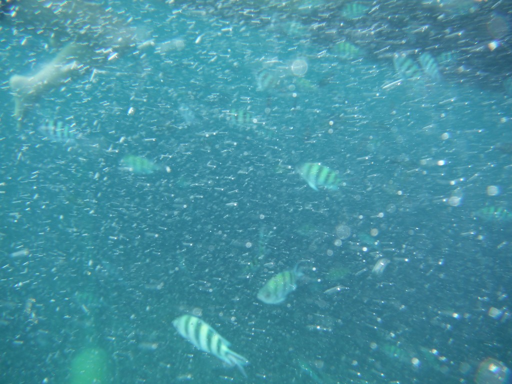 We drove on the back of the truck with two other people from Sweden to the pier. There we got our snorquelling masks and waited for more people, which arrived after a while in groups of two or three. There were also some Germans, but mainly, chinese, korean or thai people. Our guide gave everybody snorqueling masks and we entered the boat.