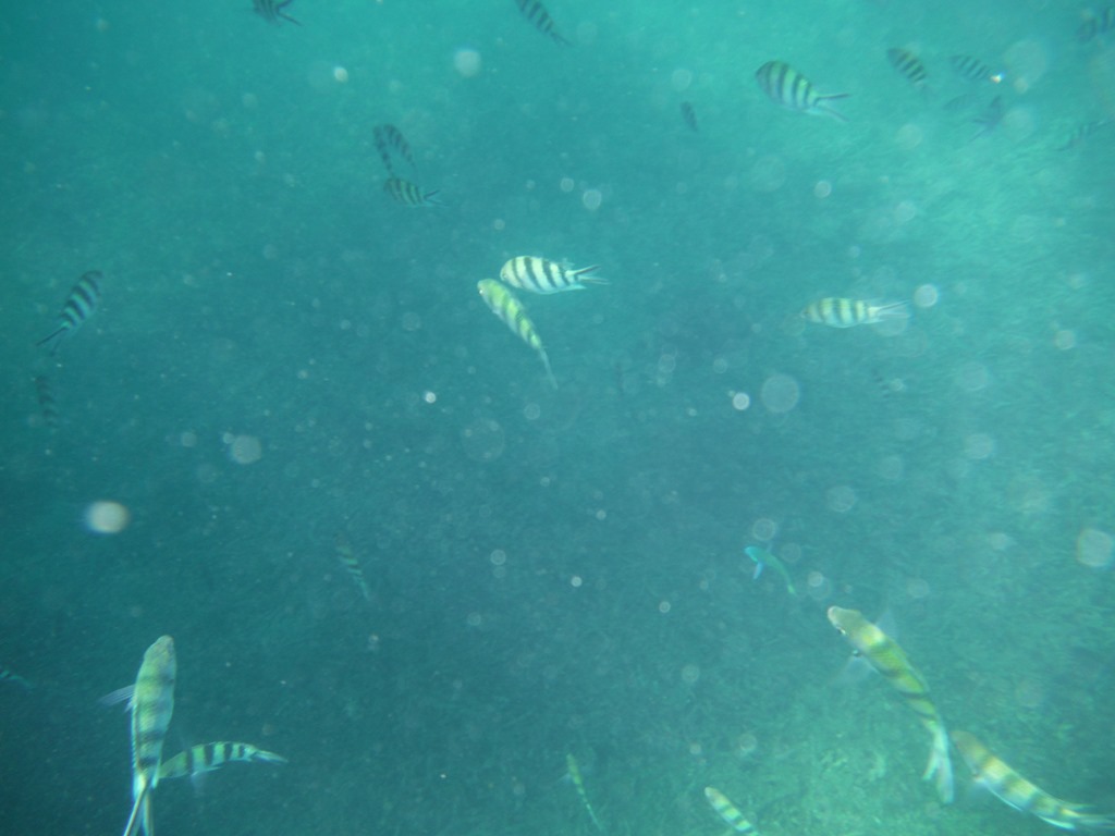 We snorquelled around for 45 minutes and saw beautiful fish, but no sharks, such a shame. We started talking to the swedish couple on the boat. They were really friendly and told us a lot about Koh Samui. On the way to the next bay some chinese people got seasick and one vomitted at Leo. He wasn’t really happy about that.