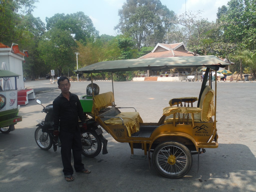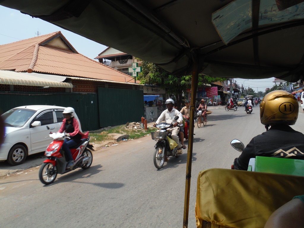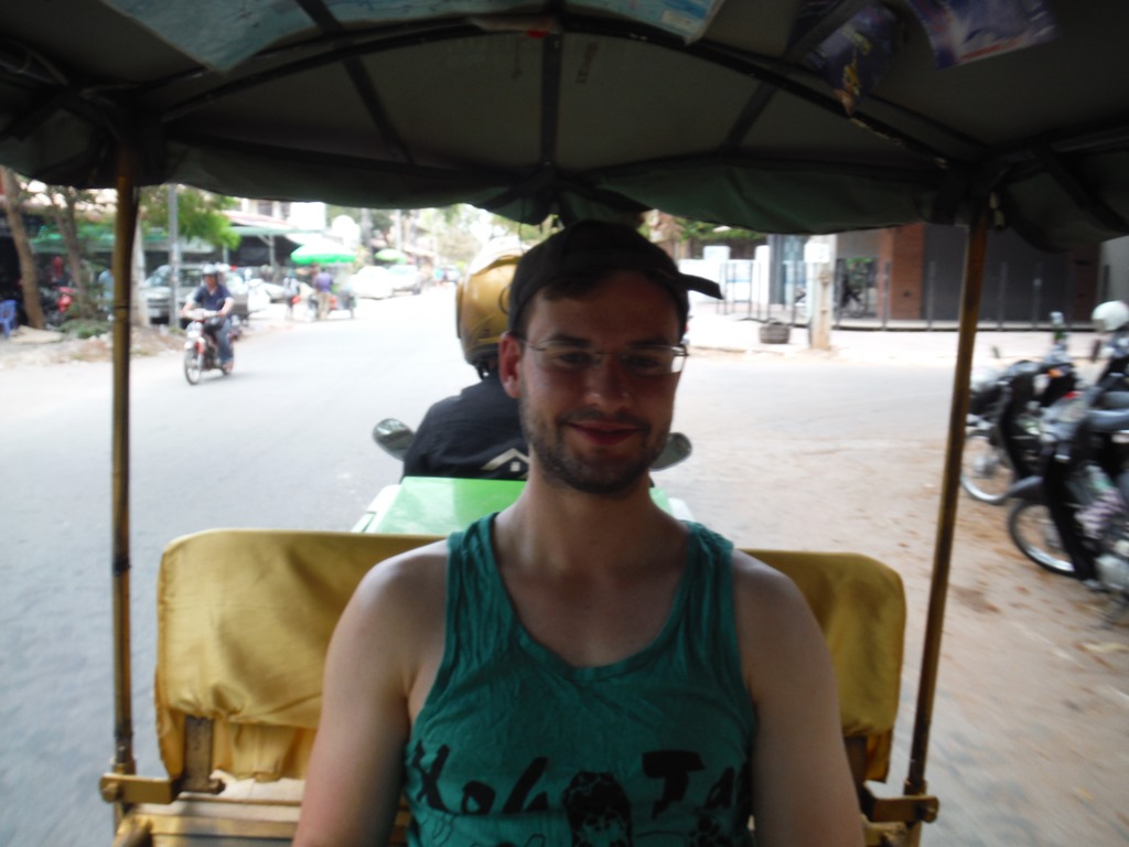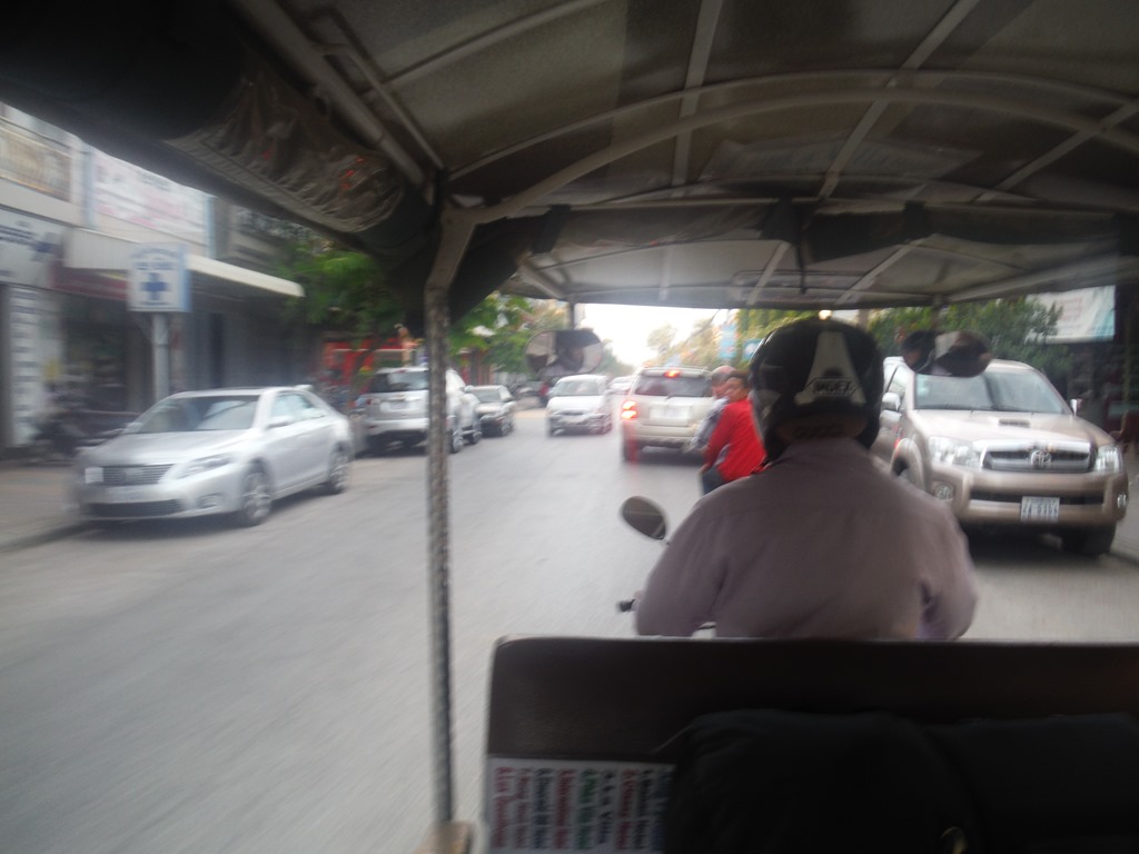 DSCF8071DSCF8072DSCF8081In the bus to the bus station we arleady met two nice guys from England. We talked a lot with them and had a great time. They wanted to go to Battambang as well, but wouldn’t like to do the bamboo train today. So when we arrived in Battambang we split apart. Leo and me picked a nice looking tuk tuk driver and rented him for the whole day.
