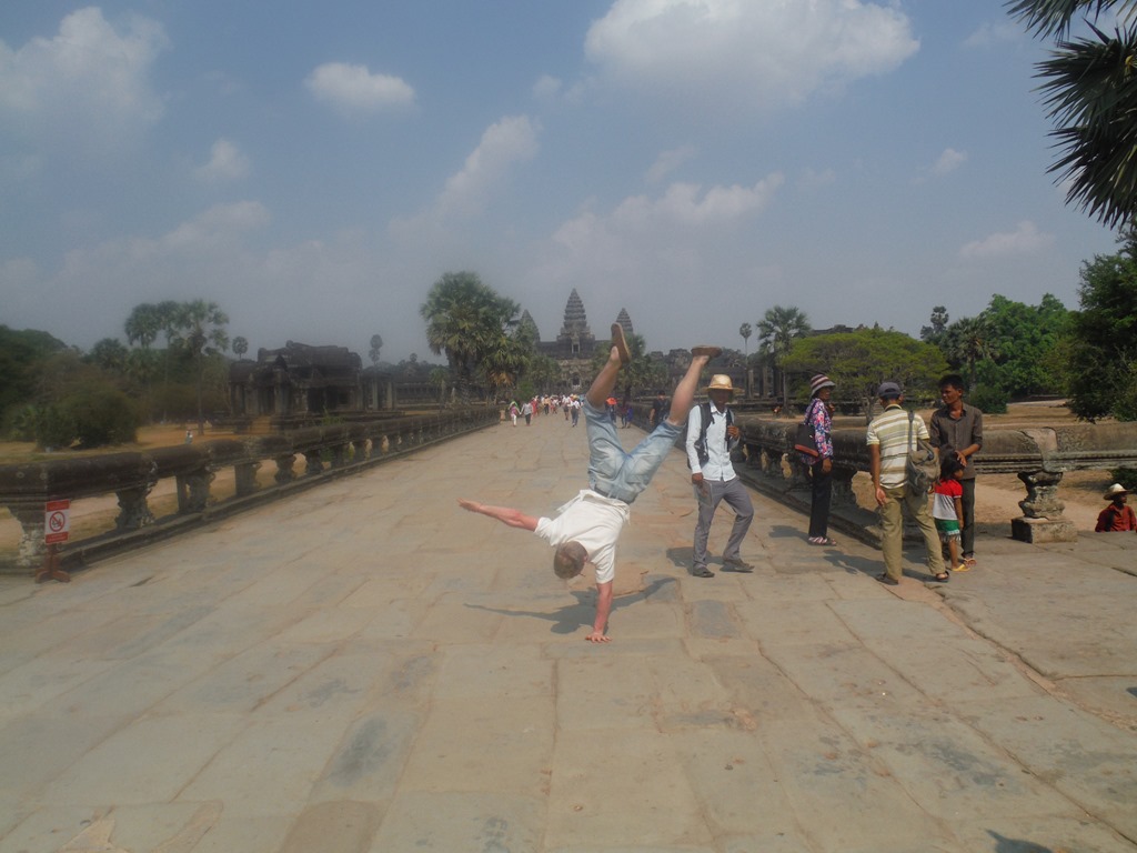 When we entered the gate of the Angkor-Watt area the first thing I had to do, was to take a picture of my one-handstand for my memory.
