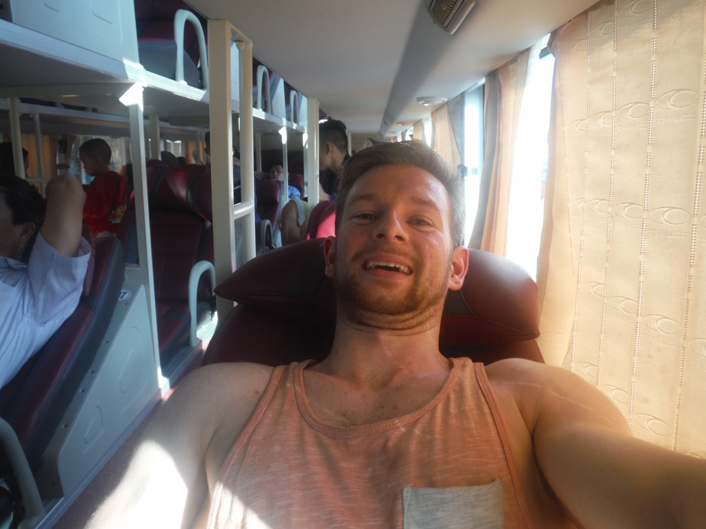 Our host ordered us some tickets for the bus. When we arrived at the “bus  stop”. There was no bus coming, tthirty minutes before our bus to Saigon would leave we decided to stop a cab and take a cab to the bus. It was quite close and we almost missed the bus to Saigon, but luckily we didn’t. At the airport we slept around 4 hours till our flight departed to Bangkok.