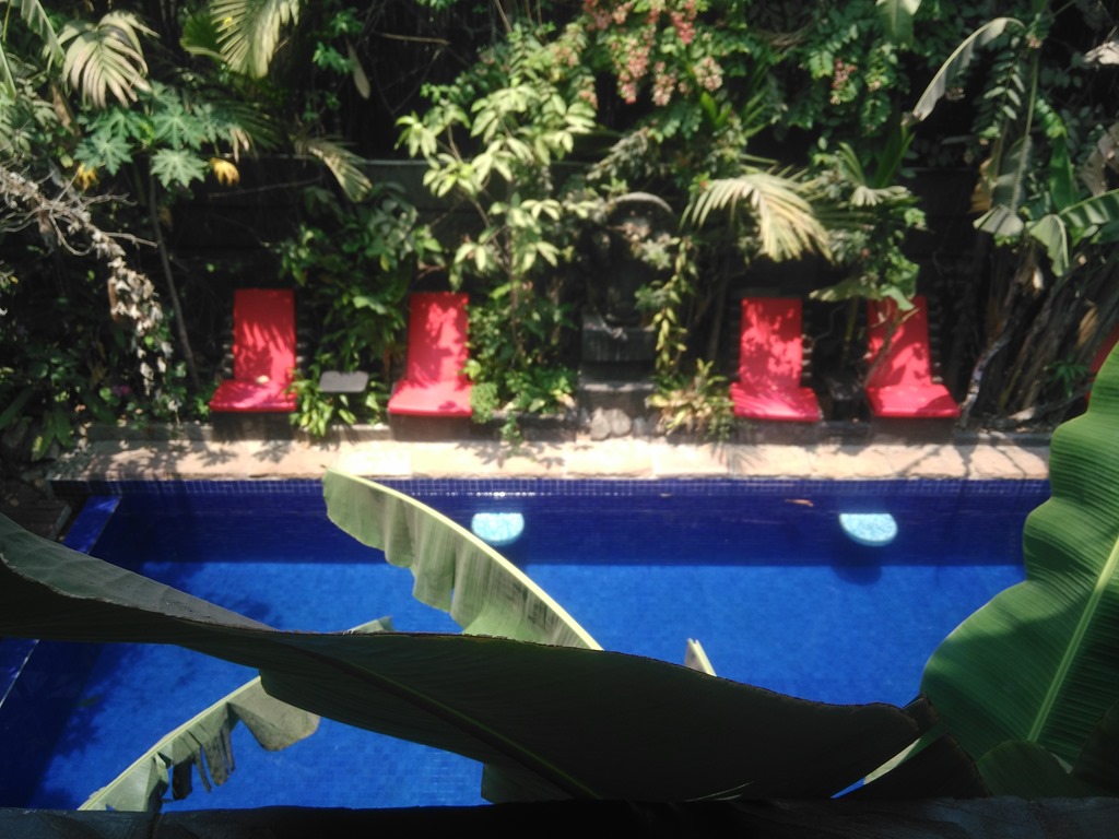 We swam for about half an hour. Than we returned to our place situated below a palmtree in the shadow. We enjoyed almost the whole day tanning and driving around to various beaches. We ate at a famous resort which also had an infinity pool. We decided to swim in the pool before having dinner.