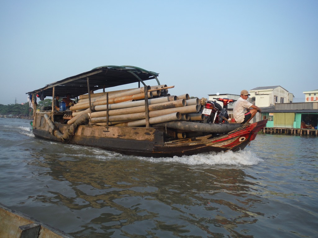 When we were driving on the motorbikes we already got a good experience of the lifestyle and the attitudes of vietnamese people. They are very busy, carry everything with motorbikes (almost everybody rides one) and they are so friendly. Never met such friendly and helpful people before. After five hours ride we arrived in Can Tho. Luckily there was WiFi in the bus so I could already book a resort in Can Tho.