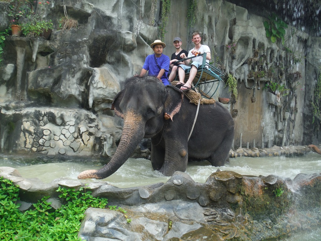 Staying with the family we figured out that they already planned the whole journey for us. So we started at 10 o’clock to drive to the first place. It was a Zoo quite close to the house of the family. We entered and went straight to the crocodile farm. There we bought raw meat and fed the crocodiles. They were quite lazy because of the high temperature but some of them were happy about us feeding them. It was impressive to see how fast this animals can attack. After feeding the crocodiles, Eahr invited us for a ride on an elephant. It was awesome we rode the elephant for approximately twenty minutes and discovered a really enjoyable way of travelling around the world. Probably I should have tried that earlier. We haven’t expected that the ride on the elephant would be that high. During our ride we crossed many interesting plants, some other staff members than our rider and a waterfall where we took some pictures.