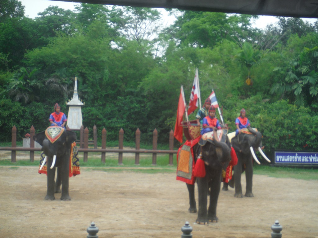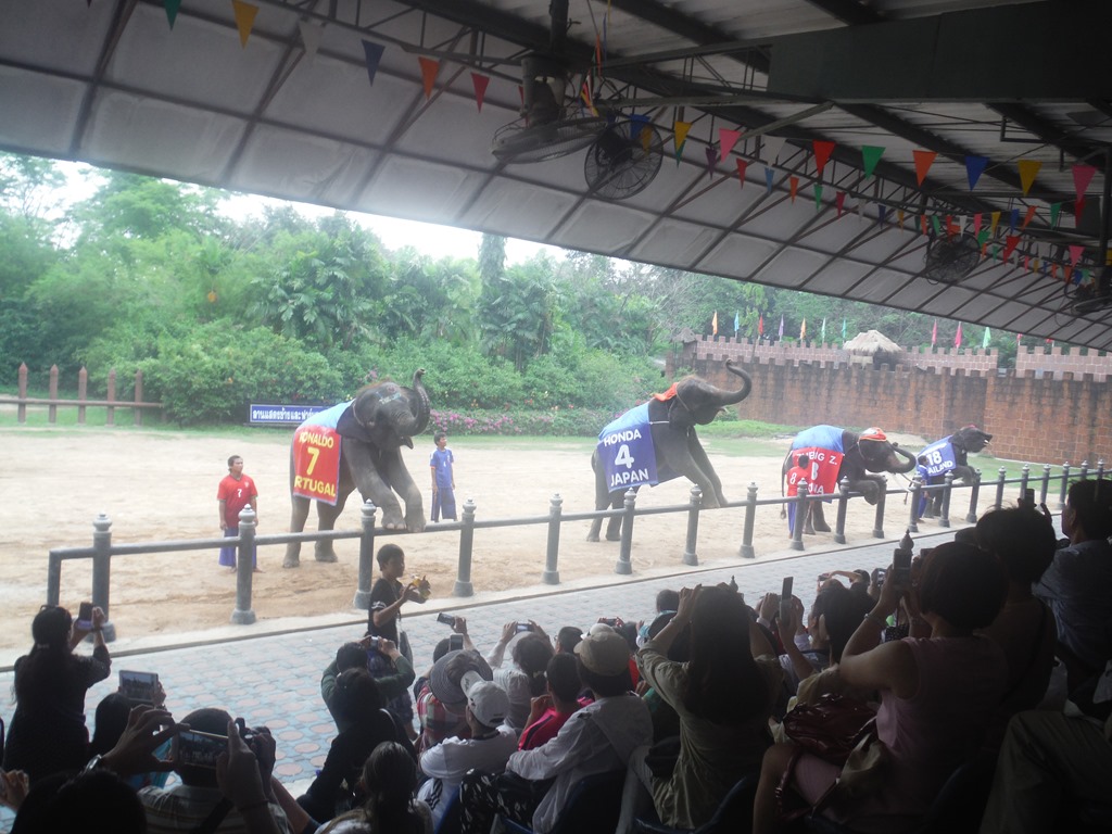 At first our elephant entered the stage and the speaker started to explain the story of Thailand. It was a roleplay with elephants and actors and reminded me a bit of the Karl May Festspiele in Germany. After the roleplay finished the elephants switched to sports and