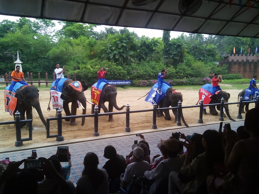 It was interesting and funny to see this big animals playing soccer and their riders controlling them. To control them the riders used a weapon which looks like a hook to threat the elephant. Normally the elephant does what he is supposed to do, but in some cases not. This time they never had to use the weapon which was good in my opinion, because elephants look so sweet. They did handstand and danced like humans.